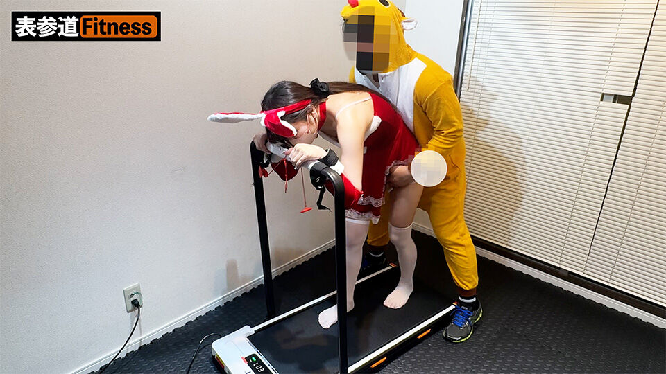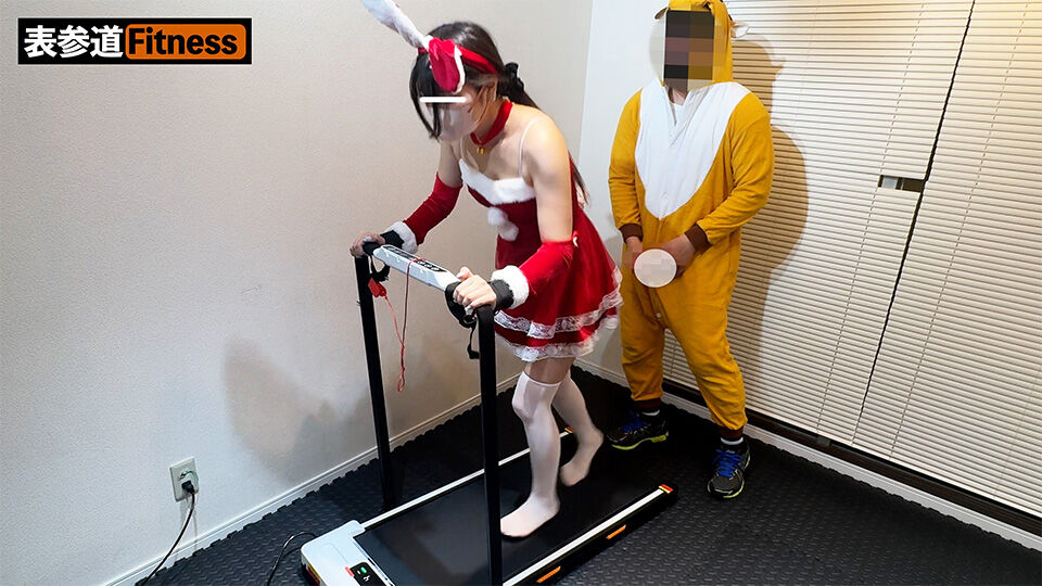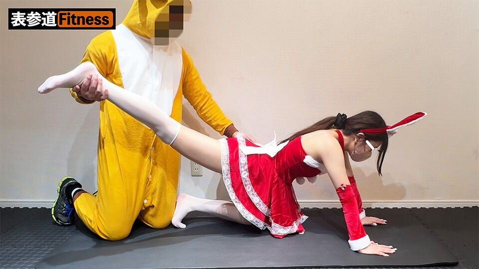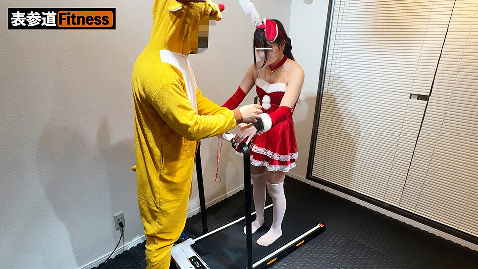 サンタコスの丈が短いせいで、トレーニングパンツが丸見えになってしまっていました。